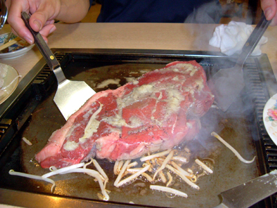 『鉄板ジャンボステーキ』が出てくると回りのお客がビックリ!目が点・・・・・・・・・