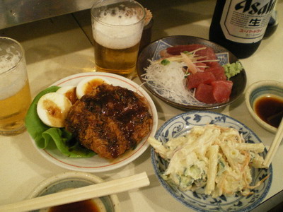 素朴だけど、味覚は本物。左からミンチカツ。マカロニサラダ。そしてマグロブツ。