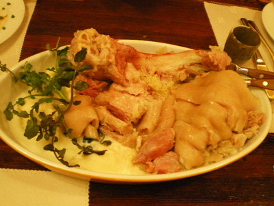 豚の骨付きすね肉を塩漬け後、野菜スープで煮込んだもの。