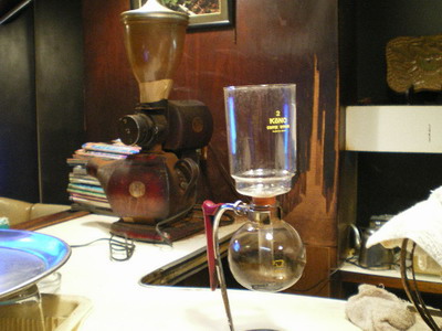 このコーヒーミルの貫禄わかりますか?ガムテープで補修した年代物ですよ。