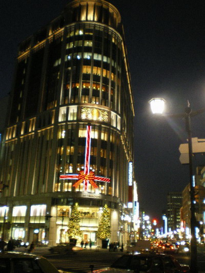 リボンが掛かっている三越日本橋本店、今晩はどこでディナーしようか・・・