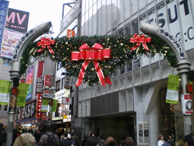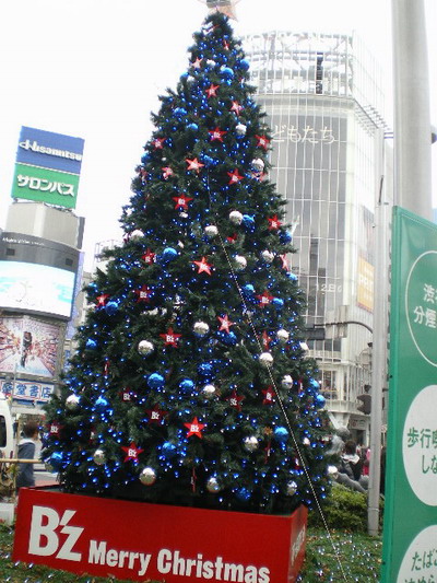 忠犬ハチ公の隣りにクリスマスツリー