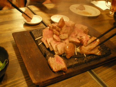 浅草「トンテキ元気」桜島溶岩プレートで焼いてボリュームマンテンです♪