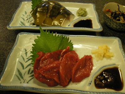手前にあるのが、本場熊本直送の馬刺しです。