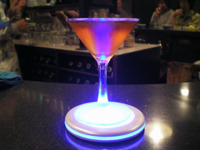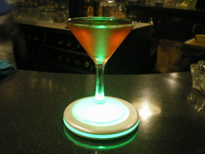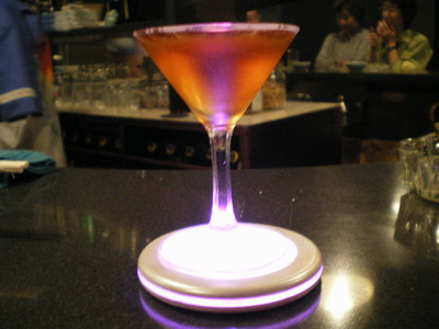 マスターが七色に変わるコースターを敷いてくれて、大はしゃぎ