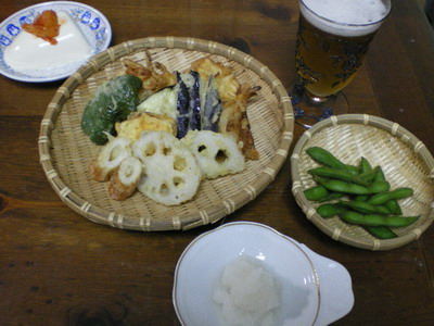 夕飯です。油ばんばん飛ばして揚げました